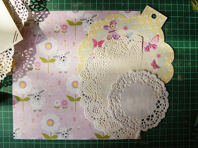 Для того, чтобы собрать альбомчик воедино, я использовала такую тему, как бумажные ажурные салфетки. В столь нежном возрасте они подойдут в альбом и мальчику, и девочке :))) Плюс белый цвет - универсальный выход. И ещё у меня были декоративные вырубки от Гули, которые я решила пустить в места стыков разворота. Опять же для того, чтобы объединить между собой две странички.