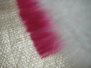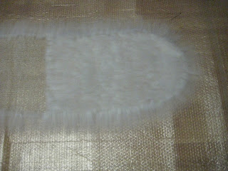 Еще один ряд из белой шерсти, его выкладываем тоже тупыми кончиками прядки кнаружи, шаг около 1 см
