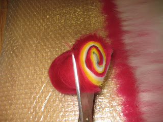 Далее займемся розанчиками. Для этого подготавливаем меринос разных цветов, какие есть в наличии... Делаем маленькую тонкую раскладку вдоль